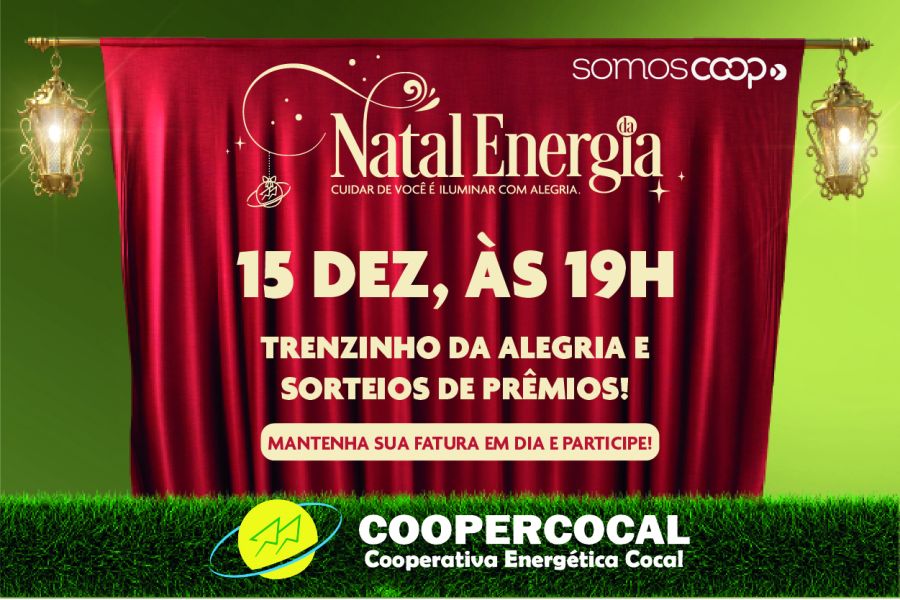 O fim de ano na região ganha um brilho especial com mais uma edição do Natal da Energia, promovido pela Coopercocal. A ação, que já virou tradição, vai espalhar magia, solidariedade e encantamento por todas as comunidades atendidas pela cooperativa.