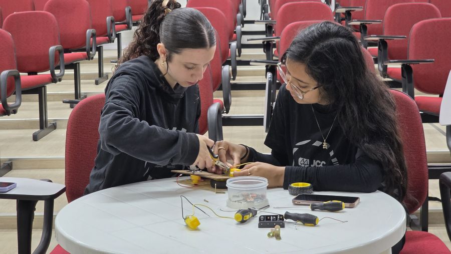 Enquanto alguns jovens já tinham alguma noção de robótica, para Raphaella Garcia Della Bruna e Evellyn Rosso, ambas de 16 anos, tudo é completamente novo e empolgante. “Nós nunca tínhamos mexido com nada disso. Está sendo um aprendizado incrível, porque além de ser algo novo, é algo que pode até se tornar uma profissão no futuro. E mesmo no dia a dia, já ajuda, saber arrumar uma tomada, entender sobre eletricidade… É algo que a gente leva pra vida”, conta Raphaella.