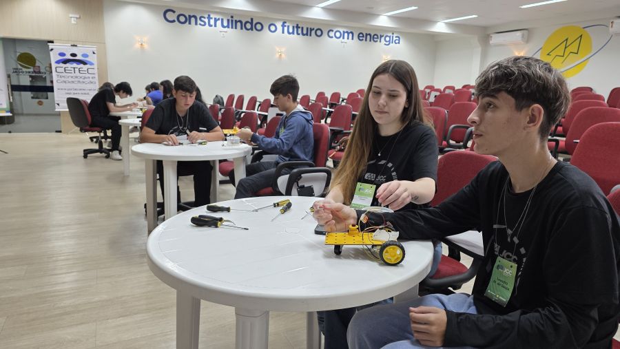 Para o instrutor Maurício Cardoso Medeiros, o módulo de robótica é uma oportunidade de conectar a tecnologia com a realidade da cooperativa. “A gente quer inserir o conceito básico de eletrônica, mas também mostrar como isso se aplica no dia a dia da Coopercocal. Eles estão aprendendo a montar circuitos com motores, sensores e drives, criando um carrinho de manutenção que vai simular o atendimento de uma rede elétrica. É uma forma lúdica e prática de aprender sobre energia, eletrônica e também sobre o trabalho em equipe, que é um dos pilares do cooperativismo”, explica.